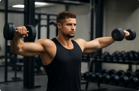 当你试图举起无法控制的重量时,身体会本能地耸肩,利用强壮的斜方肌把重量“提”起来。解决方法: 将重量减半,沉肩(刻意压低肩膀),并将注意力集中在把哑铃“向远端抛”,而不是向上提。