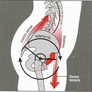 1. **紧张肌肉:髋屈肌(髂腰肌)和竖脊肌过度收缩。
